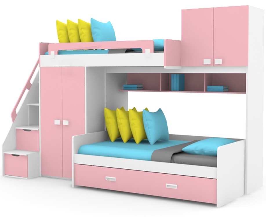 Tomy Niki caldo in legno massello di Design moderno per bambini letto a castello letto a soppalco casa con protezione anticaduta e scala a doghe letto